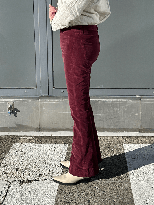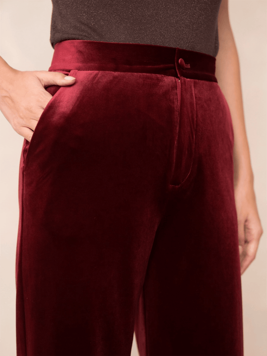 High-Waisted Straight-Cut Velvet Trousers - Dark Burgundy