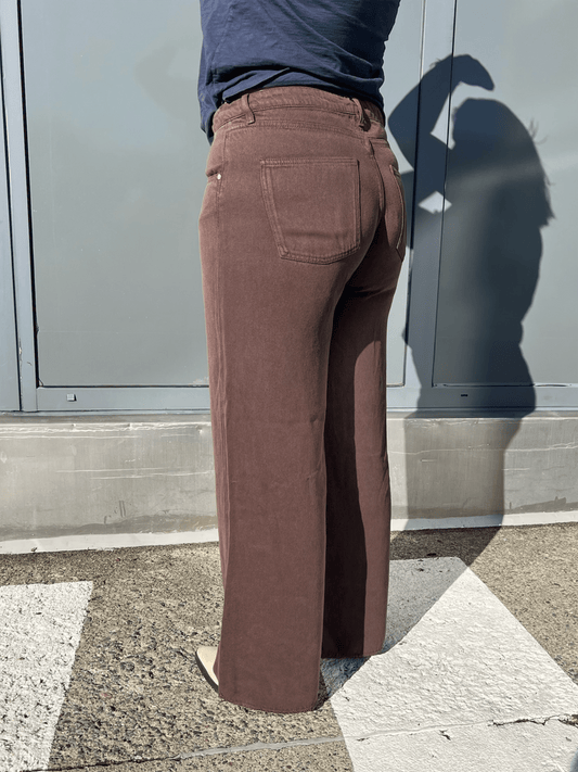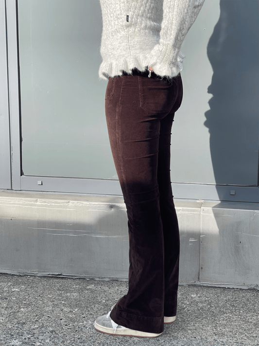 High-Waisted Straight-Cut Velvet Trousers - Choco