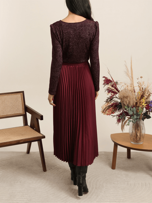 High-Waisted Straight-Cut Velvet Trousers - Dark Burgundy