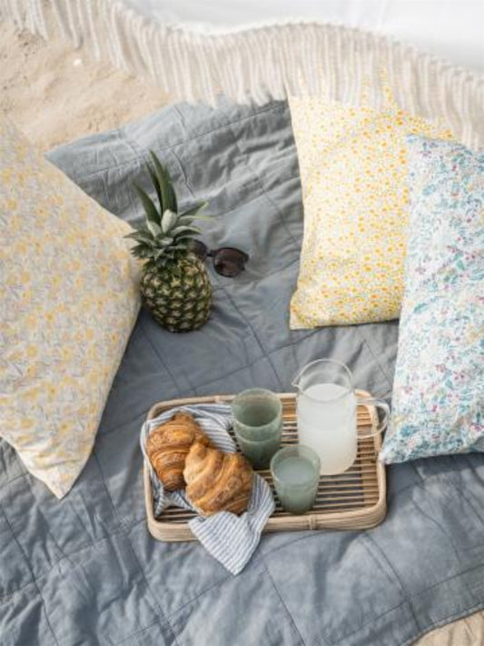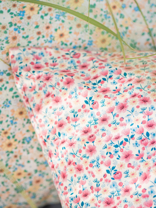 Putetrekk 60x60cm - Rosa/Beige Blomster & Blå Blader