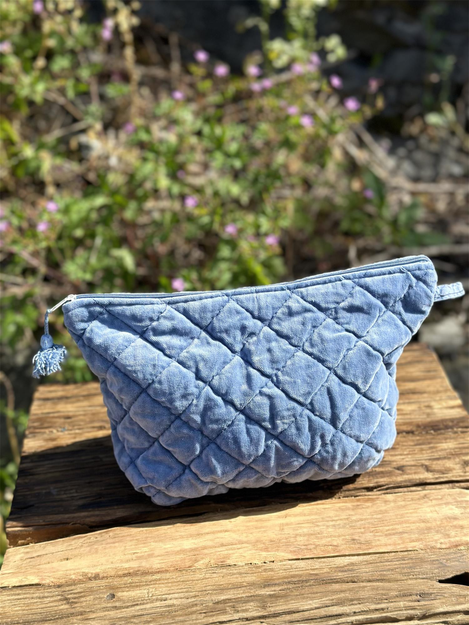 Nydelig quiltet toalettmappe i Velur i steinvasket utseende fra Anouska! Moonlight blue er den perfekte mellomblå fargen.