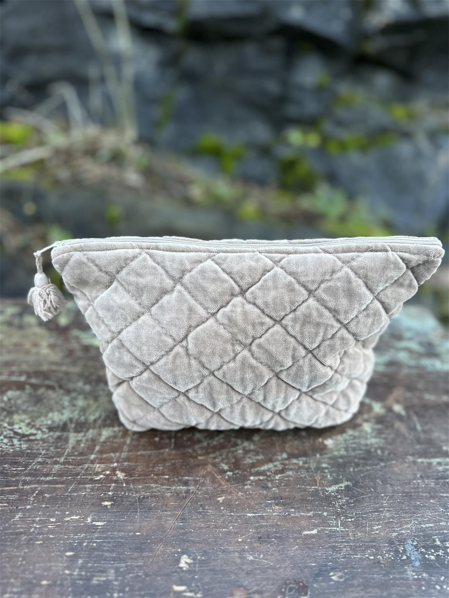 Nydelig quiltet toalettmappe i Velur i steinvasket utseende fra Anouska! Toalettmappen er i en lun beige farge og matcher det aller meste.