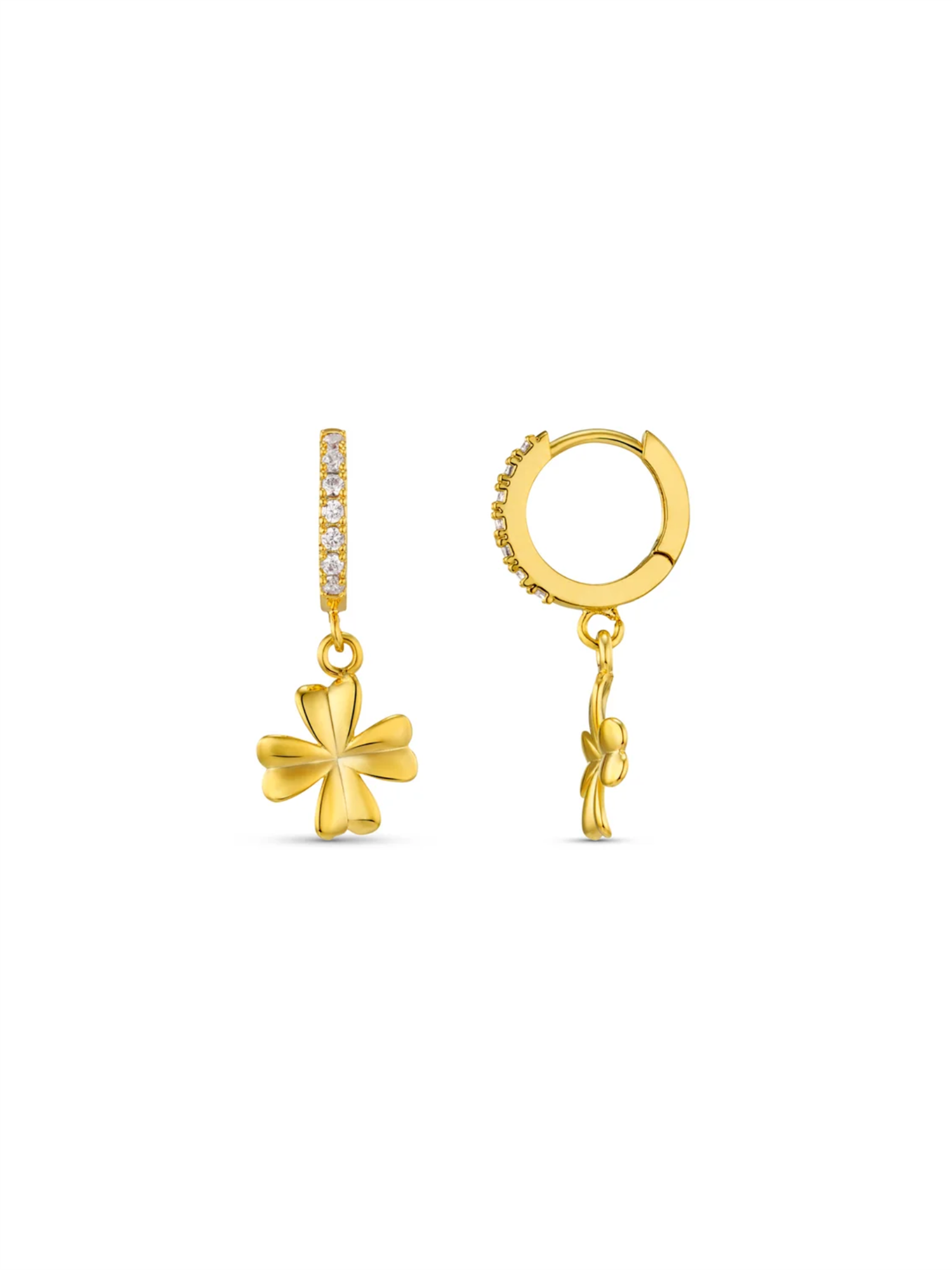 Nydelige hoops i gull med firkløver heng fra Orelia!