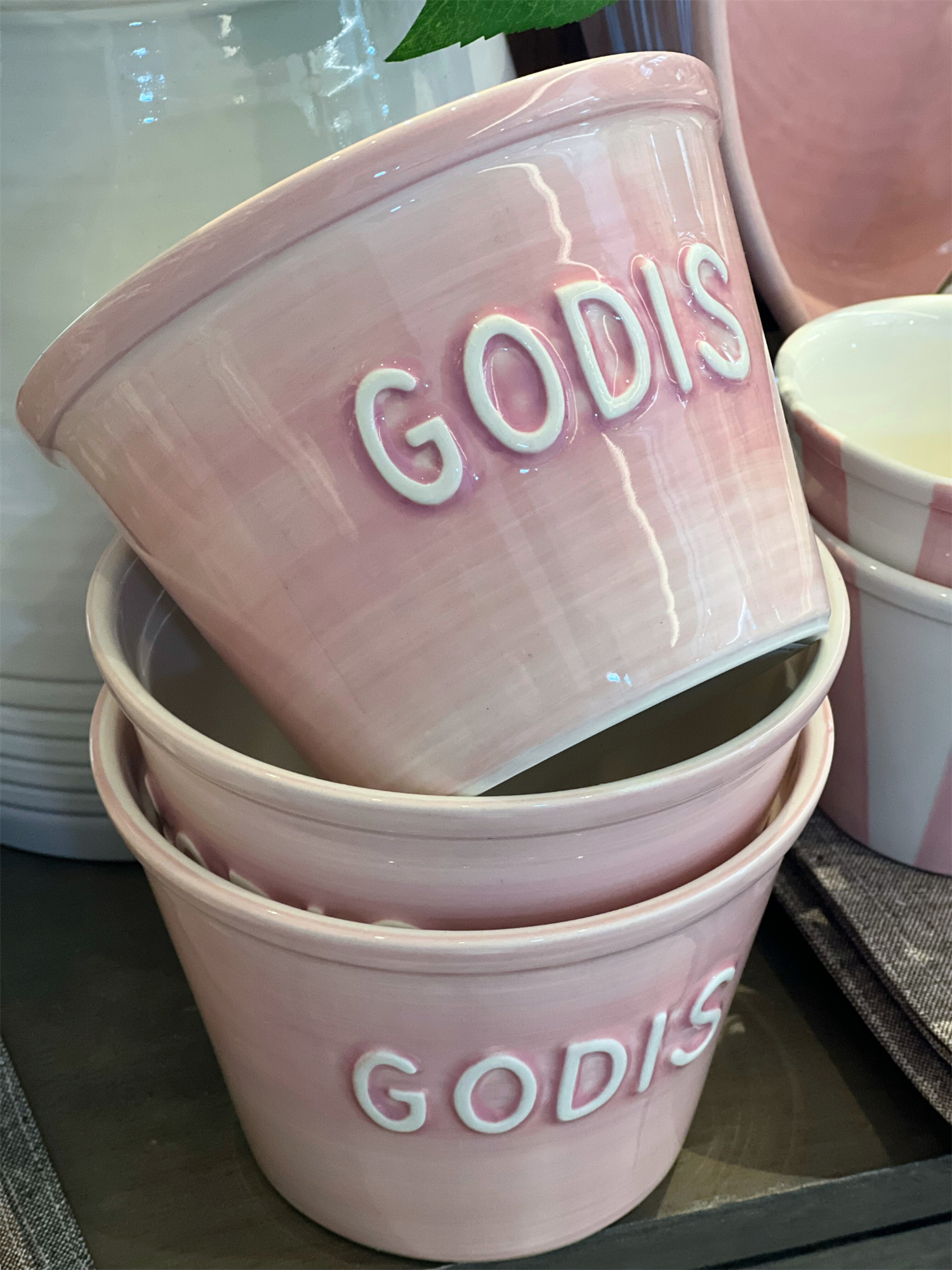 Godis skål i fargen Soft pink med hvit tekst fra Bruka design! Tekst kolleksjonen til Bruka gjør et comeback, føl på nostalgien med nye nydelige farger og varianter som de gamle klassikerne.