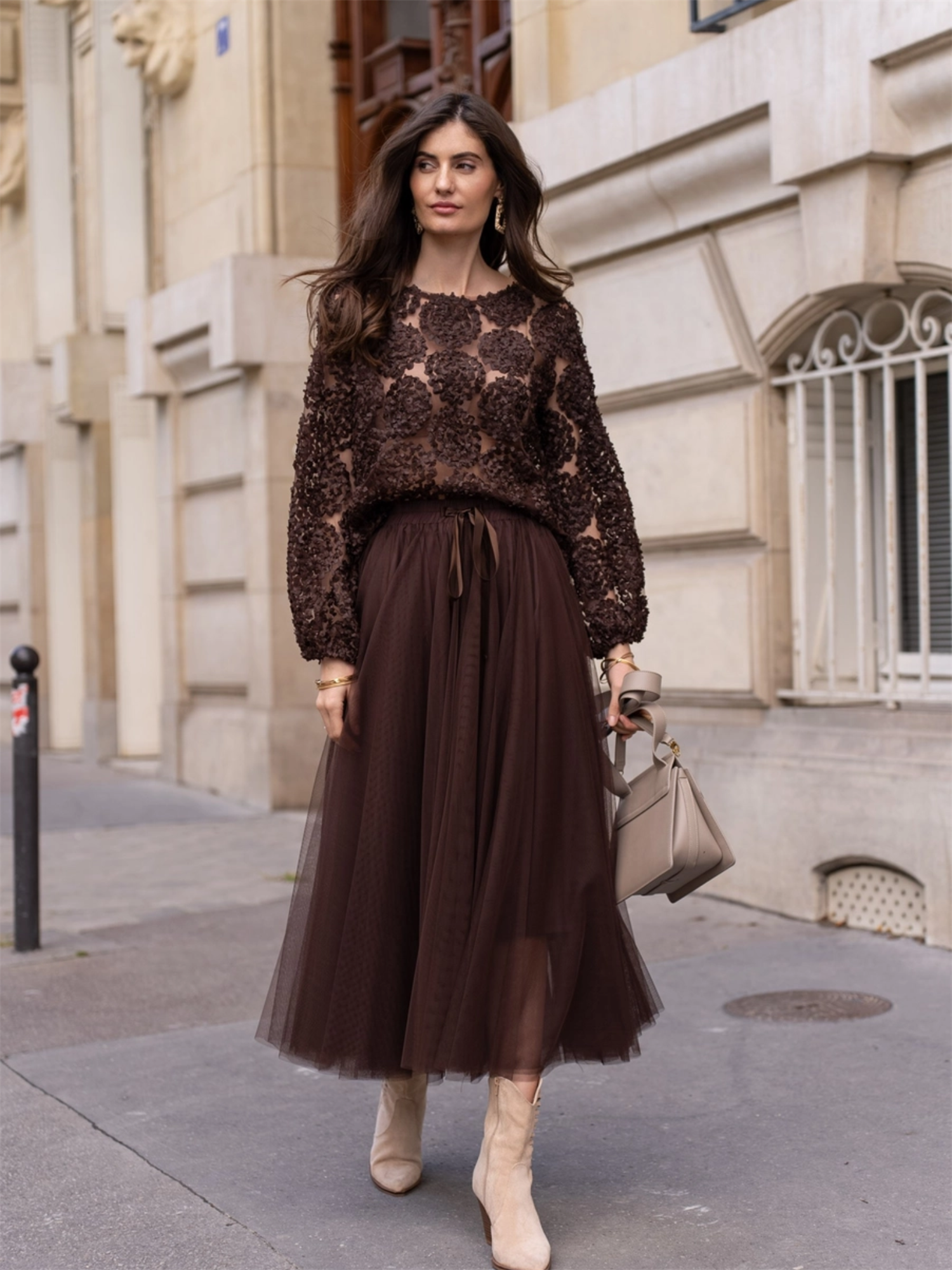 Aria Long Tulle Skirt - Choco
