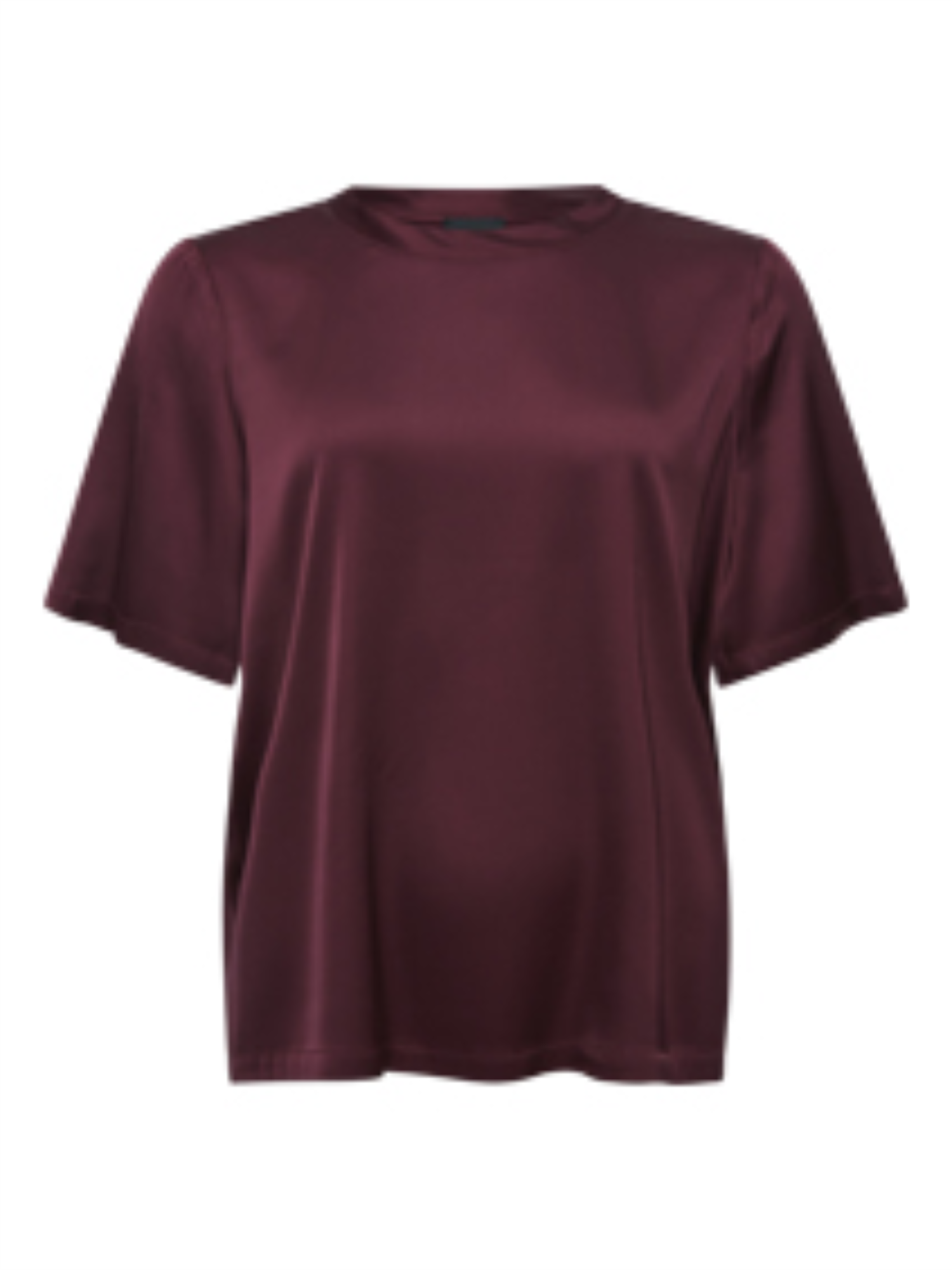 Nydelig bluse i t-skjorte passform fra Ane Mone! Blusen er i et tungt materiale, med rund hals og korte ermer. Toppen faller fint over kroppen, og er i et sateng-følende stoff av viskose.