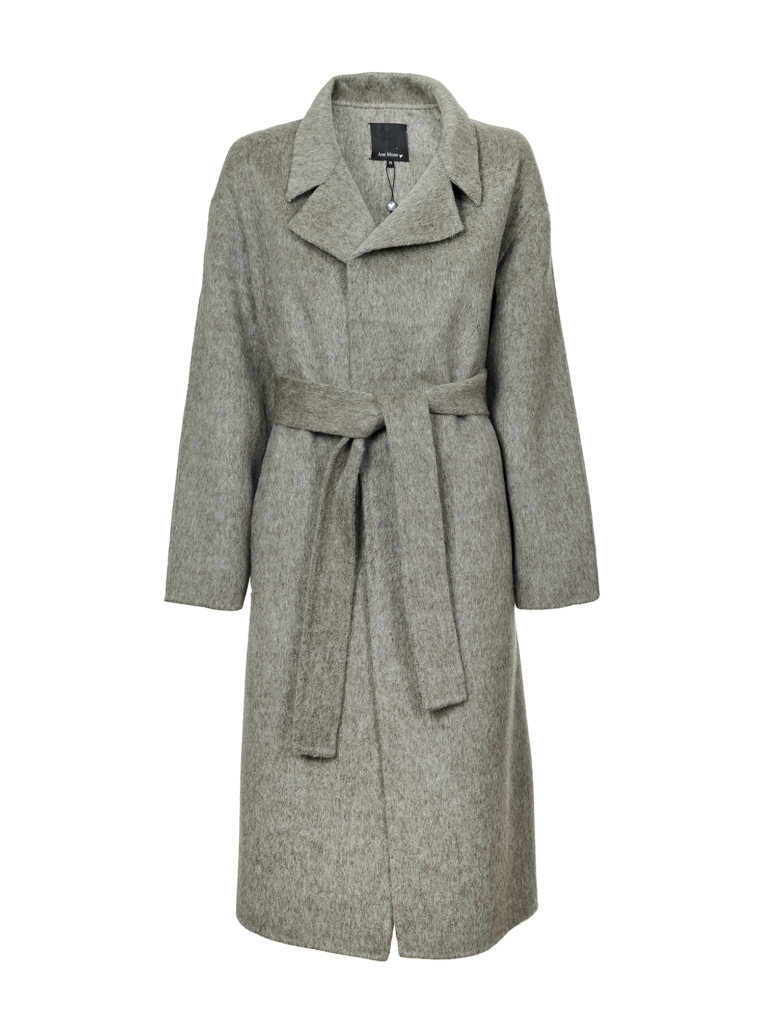 Børstet kåpe i fin ull fra Ane Mone! Elegant brun farge med belte i livet.