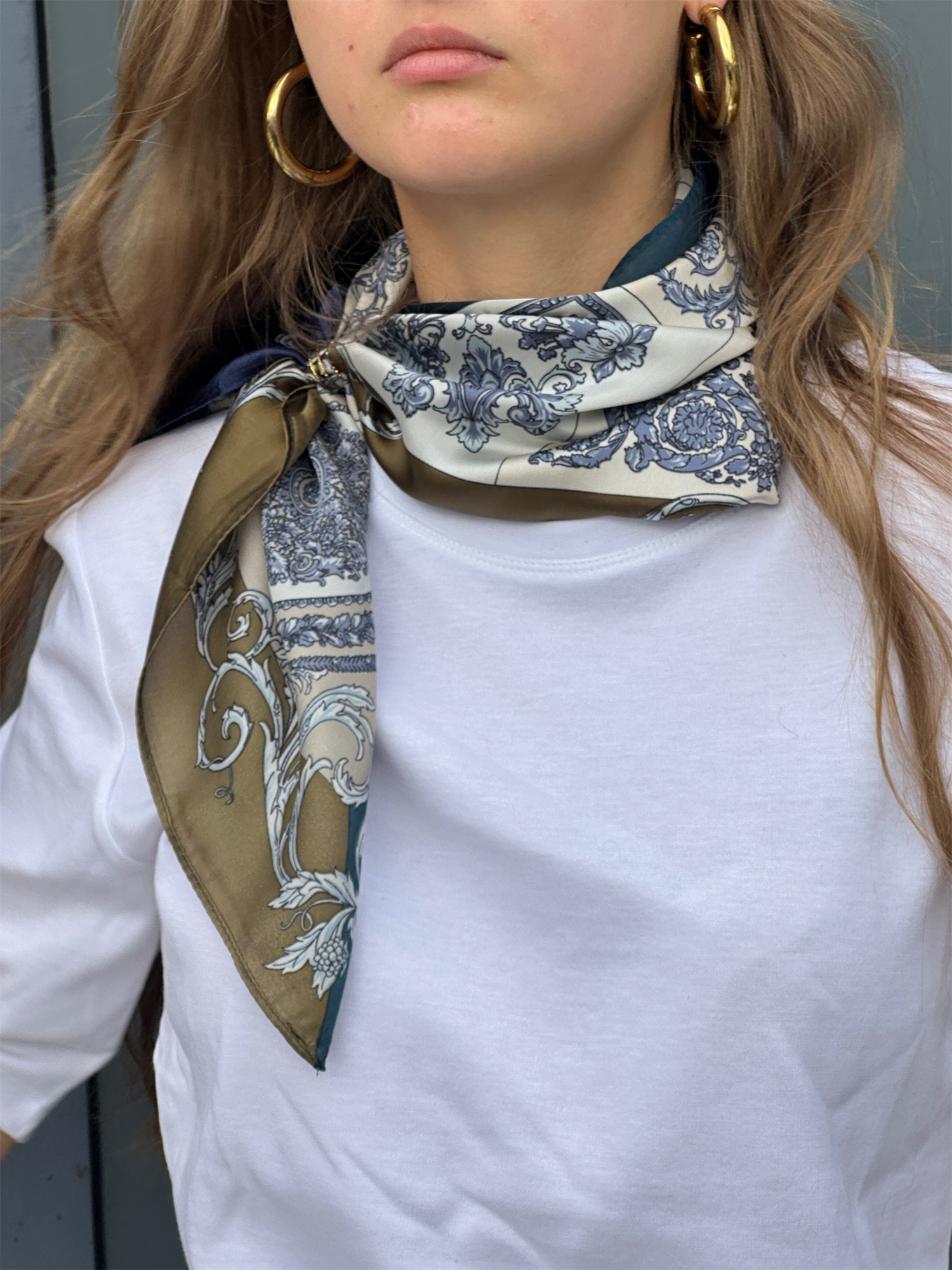 Satengskjerf i lyseblå og grønne nyanser fra Eline Ren Atelier!